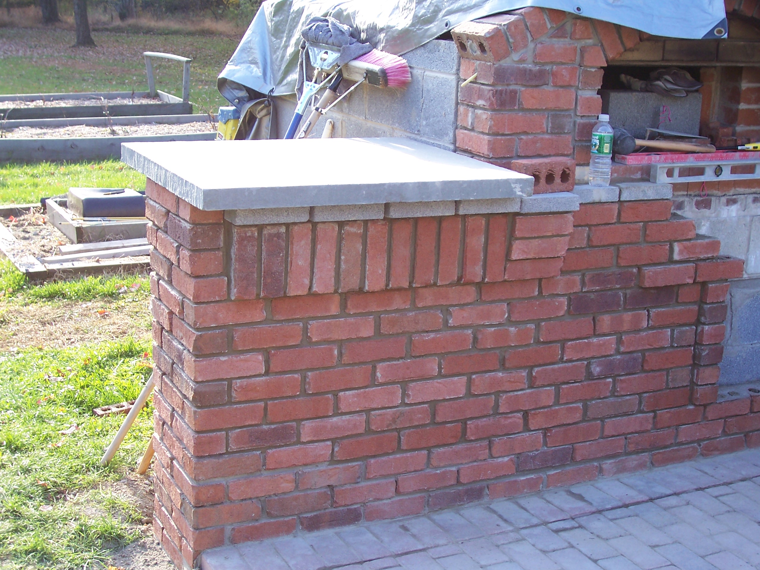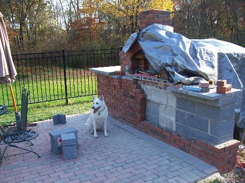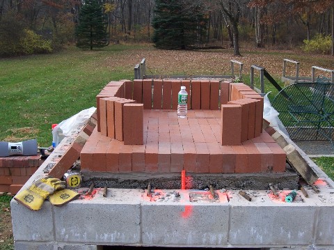 October 22nd: Both side tables are now installed, the front piece of bluestone is installed in front of the oven's mount and construction of the brick roof over the food cavity has begun.