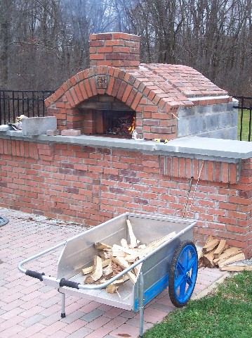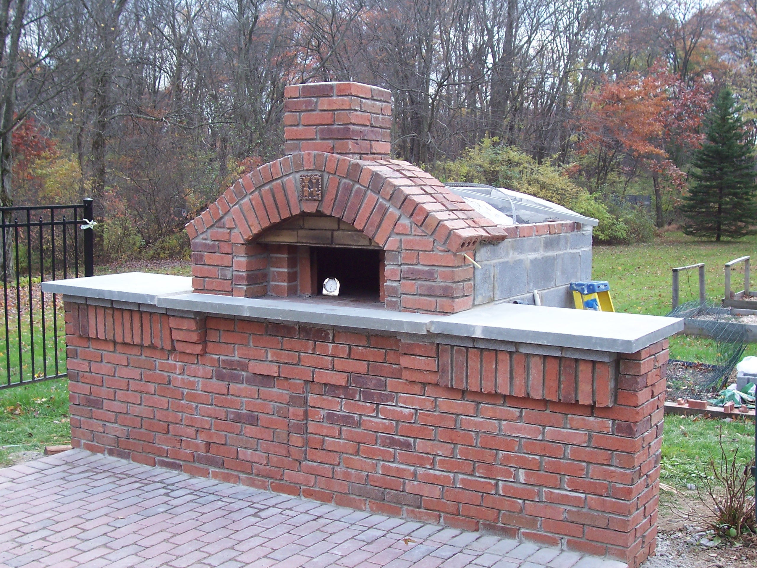 October 22nd: Both side tables are now installed, the front piece of bluestone is installed in front of the oven's mount and construction of the brick roof over the food cavity has begun.