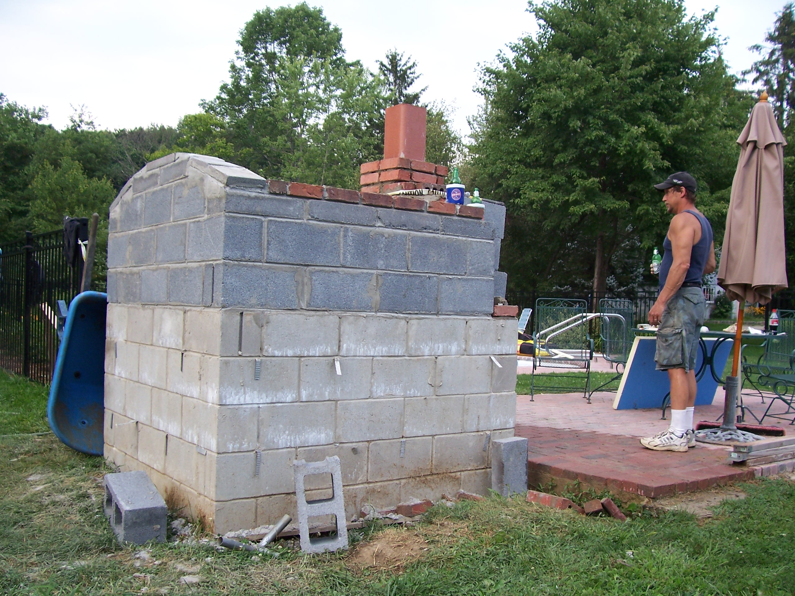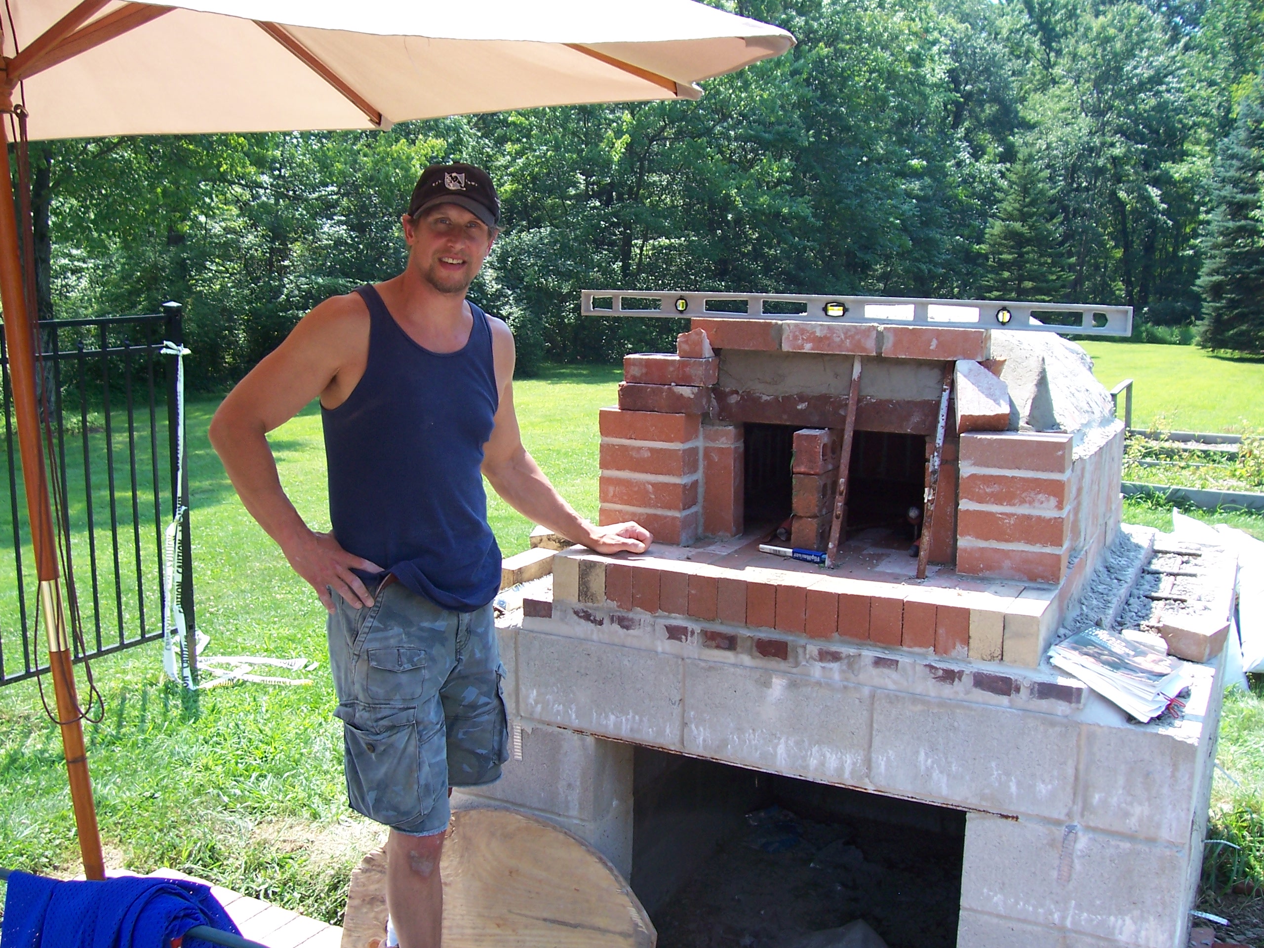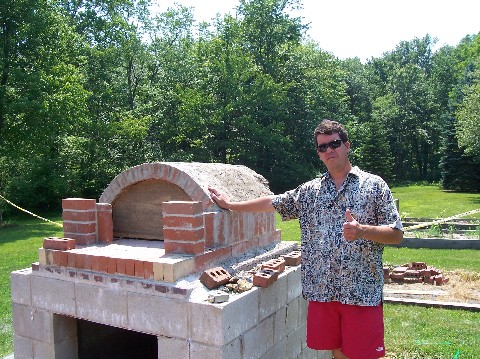 Jeff Tantleff (shown above) agreed to come in and help; doing the toughest part - forming the arch of the oven's mouth and the support structure for the chimney.